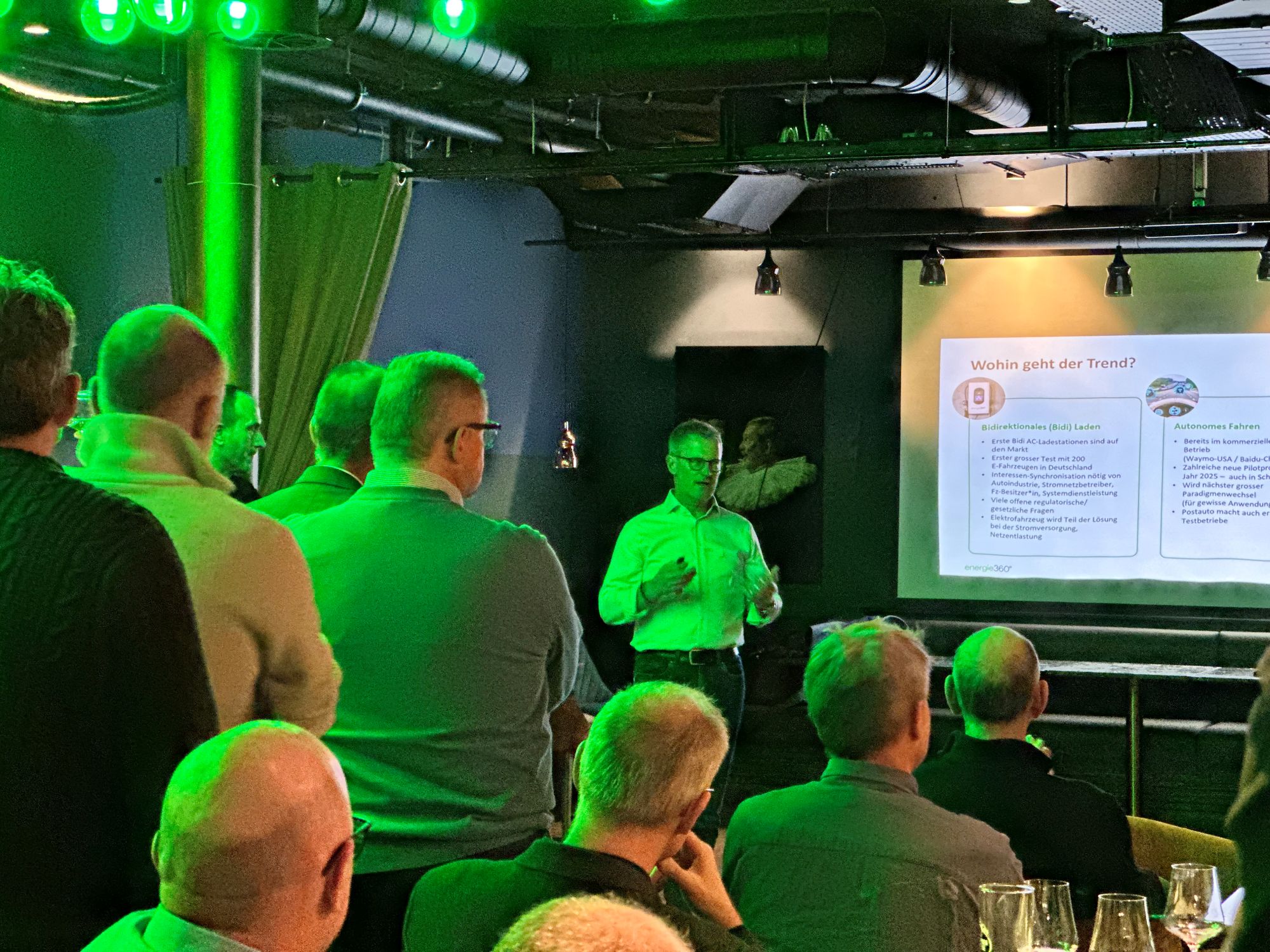 In einem rund 30-minütigen Input gaben Martin Kessler und Daniel Neuhaus kompakte Einblicke in aktuelle Marktentwicklungen und zentrale Themen der Elektromobilität. Die anschliessende Fragerunde entwickelte sich rasch zu einer spannenden Diskussion, bei der viele Perspektiven und Praxiserfahrungen zusammenkamen.