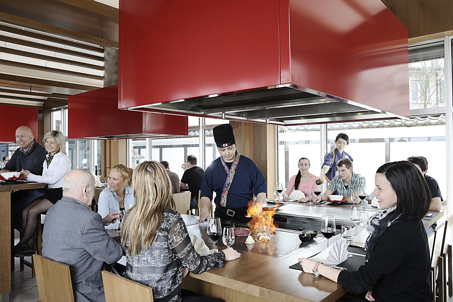 Das «Ambassador» bietet zwei Restaurants zur Auswahl: das «Le Pavillon» mit saisonalen Gerichten und das Teppanyaki-Restaurant «Taishi». In unserem «Japaner» werden nicht nur leicht bekömmliche Gerichte serviert. Die Köche im «Taishi» zelebrieren bei der Zubereitung eine Kochshow, die durchaus als Rahmenprogramm zur Auflockerung der Gäste dienen kann.