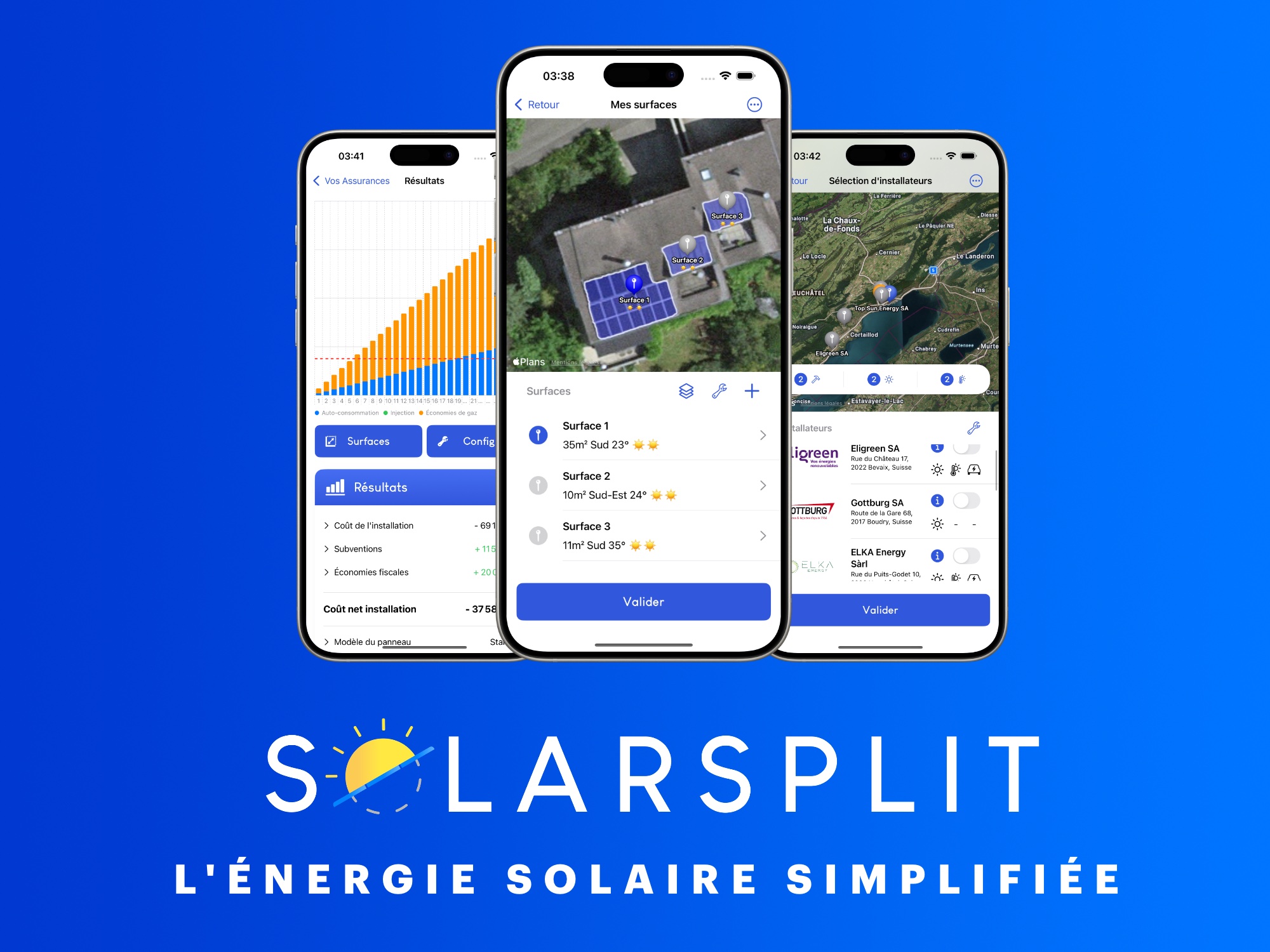 SOLARSPLIT ist eine Schweizer Mobile-App, die Solarenergie mithilfe von KI und einem gemeinschaftlichen Ansatz vereinfacht. In wenigen Minuten simulieren Sie Ihr Projekt anhand einer einfachen Adresse (Solarpotenzial, Rentabilität, Förderbeiträge) und erhalten bis zu drei vergleichbare Offerten von geprüften Installateuren. Nach der Installation verfolgen Sie Ihre Produktion und optimieren den Eigenverbrauch dank Empfehlungen, um Ihre Einsparungen zu maximieren. SOLARSPLIT ermöglicht zudem die Gründung lokaler Energiegemeinschaften (RCPv, Elektrizitätsgemeinschaften), um Solarstrom mit Nachbarn zu teilen.