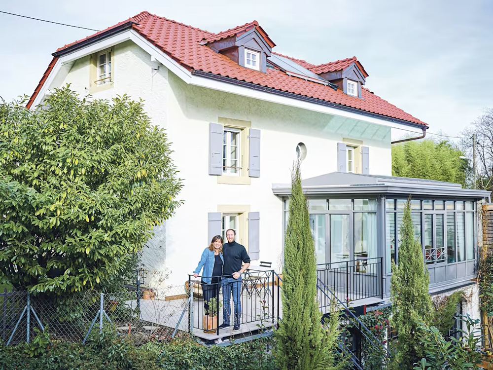 Das Wohnhaus steht im Genfer Vorort Onex. Seine Renovation dauerte ein ganzes Jahr. Die grösste Herausforderung bei diesem Projekt bestand darin, zu isolieren, ohne dafür mehr Platz als nötig zu opfern. Die Bauherrschaft entschied sich für eine Isolation im Gebäudeinnern und den traditionellen Dämmstoff Glaswolle. Die dreifachverglasten Fenster wurden alle massgeschneidert und mit der ursprünglichen Teilung mit Sprossen versehen. Technische Details wie Lüftungselemente an Fenstern und Türen sind äusserst diskret angebracht, die Heizzentrale versteckt sich hinter einer altrosa gestrichenen Schranktüre. Die Renovierung folgte auf einen GEAK, eine Evaluation nach dem Gebäudeausweis der Kantone.