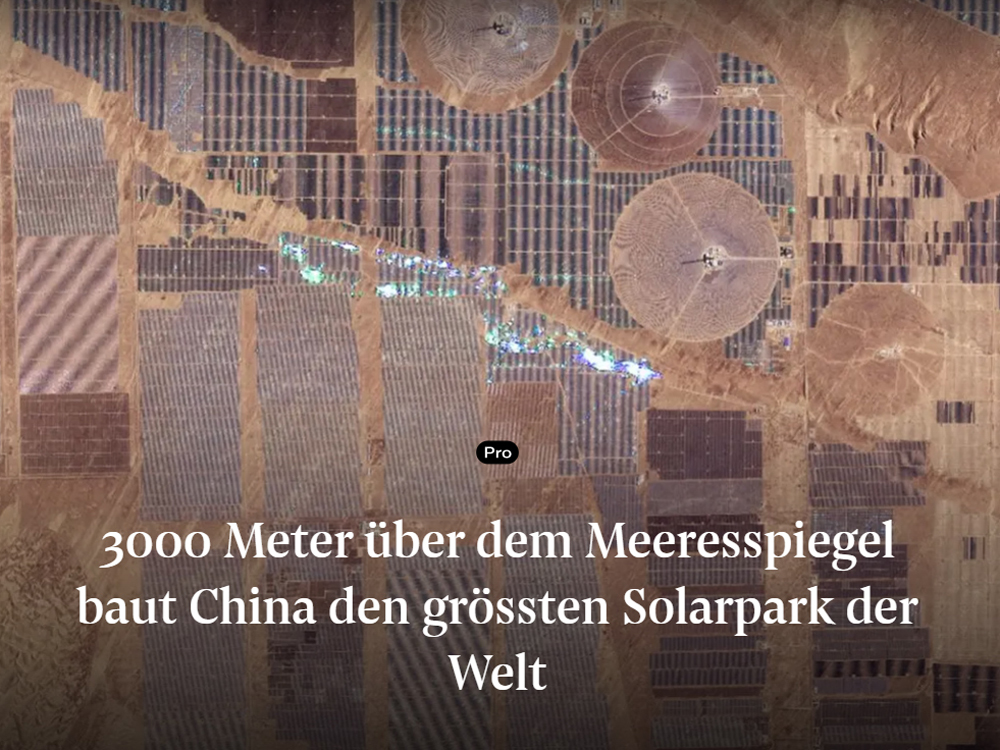 3000 Meter über dem Meeresspiegel baut China im Hochland von Tibet den grössten Solarpark der Welt. Die NZZ hat ihm einen Artikel gewidmet.