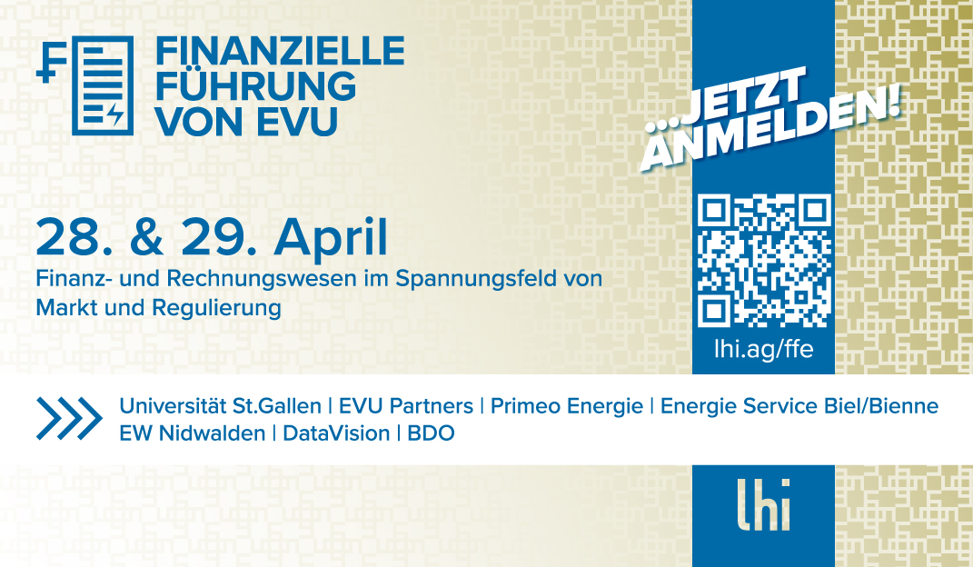 Der Intensivkurs «Finanzielle Führung von EVU» am 28. und 29. April 2026 hilft Ihnen gezielt, mit den Anforderungen und Herausforderungen der finanziellen Führung von Energie- und Versorgungsunternehmen umzugehen.