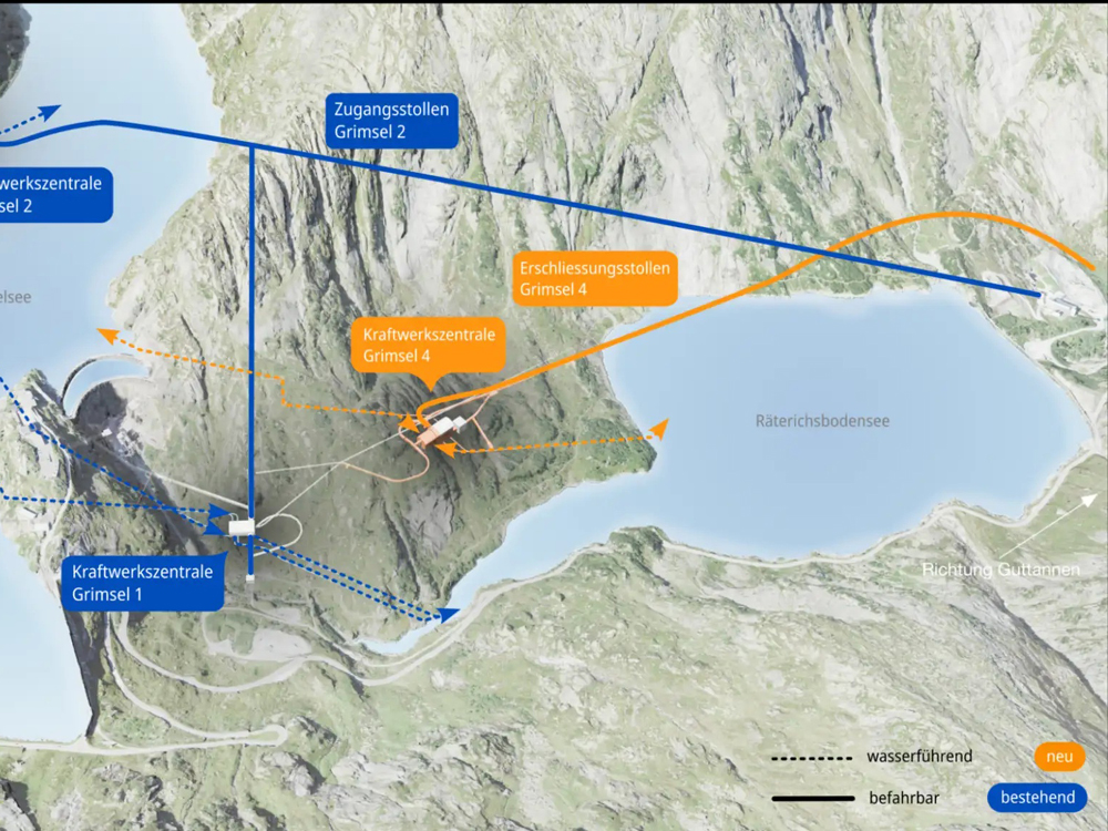 Das neue Pumpspeicherwerk zwischen dem Grimsel- und dem Räterichsbodensee dient dazu, den Wasserhaushalt zwischen den beiden Speicherseen zu optimieren. Es ist ein zentrales Projekt zur Stärkung der Flexibilität der Schweizer Stromversorgung. «Grimsel 4 zeigt: Zürich setzt auf technologisch fortschrittliche, klimafreundliche Energieinfrastruktur», sagt Michael Baumer, Vorsteher des Departements der Industriellen Betriebe der Stadt Zürich. Die Bauarbeiten für Grimsel 4 dauern von Juni 2026 bis voraussichtlich Februar 2032.
