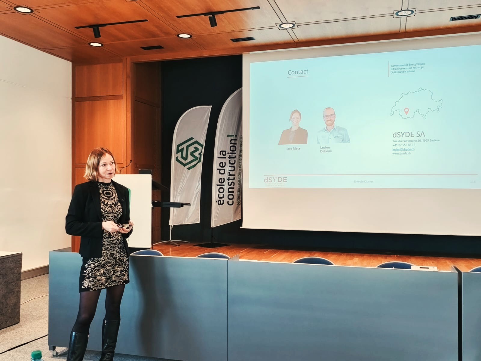 Le deuxième bloc s’est concentré sur la gestion de l’énergie et l’optimisation de la consommation propre. Ewa Metz (Business Developer, dSYDE SA) a montré comment gérer la flexibilité au sein d’un bâtiment et intégrer le couplage sectoriel.
