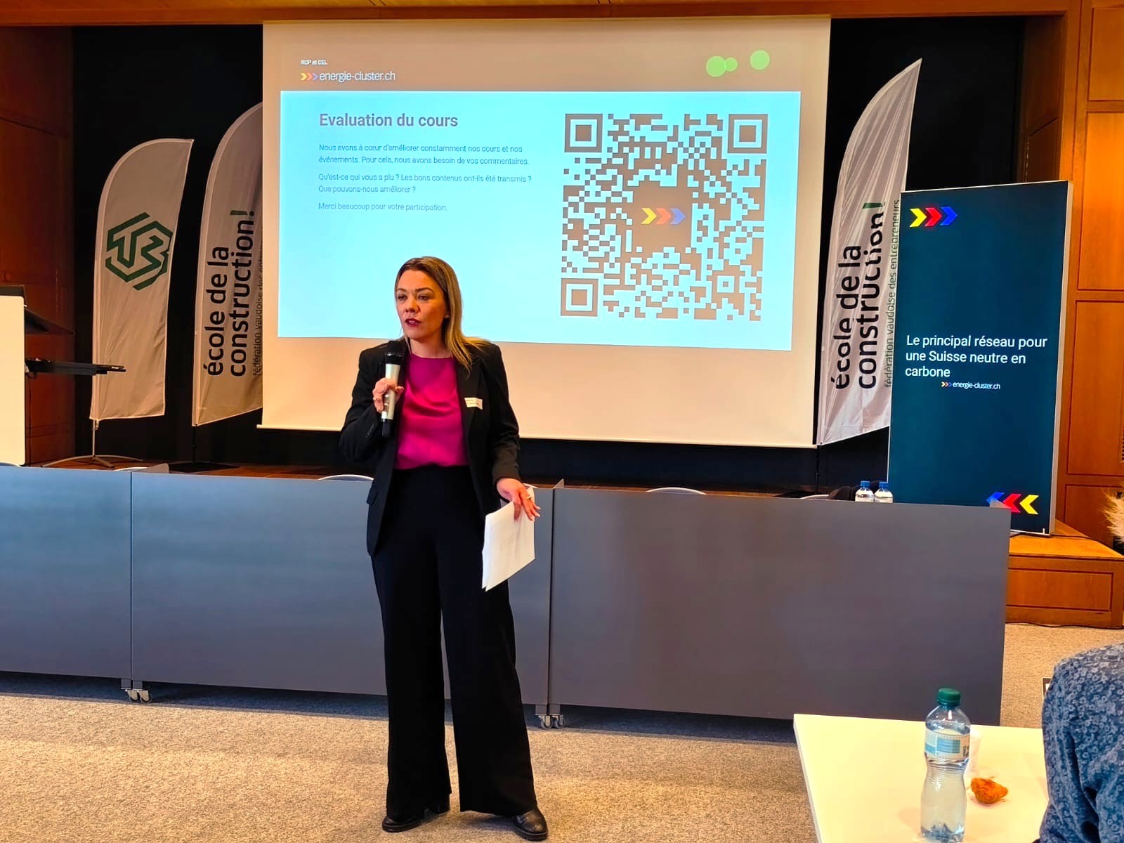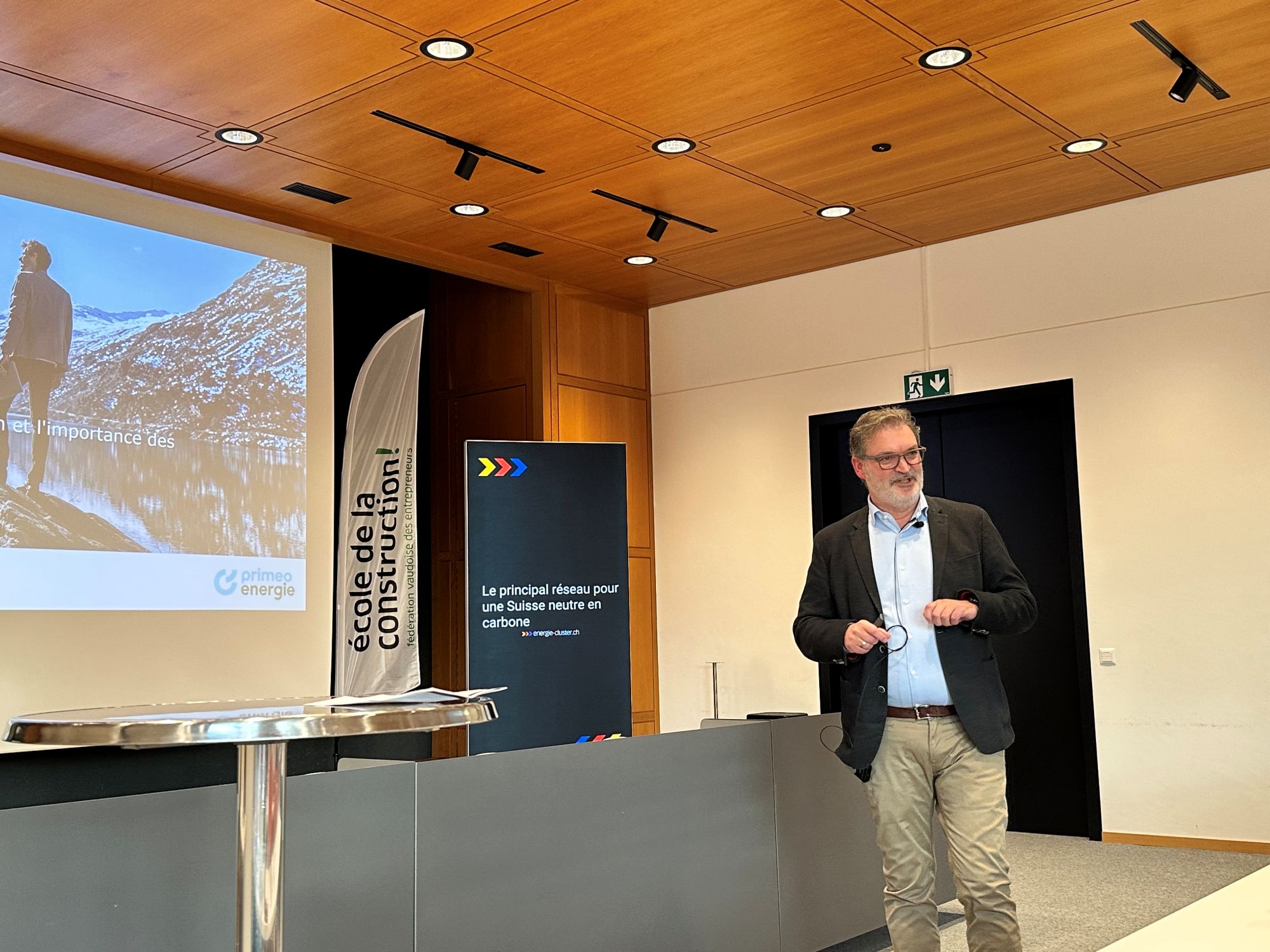 Après les mots de bienvenue de Frank Schürch (CEO energie-cluster.ch) et de Sandra Rey (responsable du département formation, TB | Technique du bâtiment), la série de conférences a commencé.
