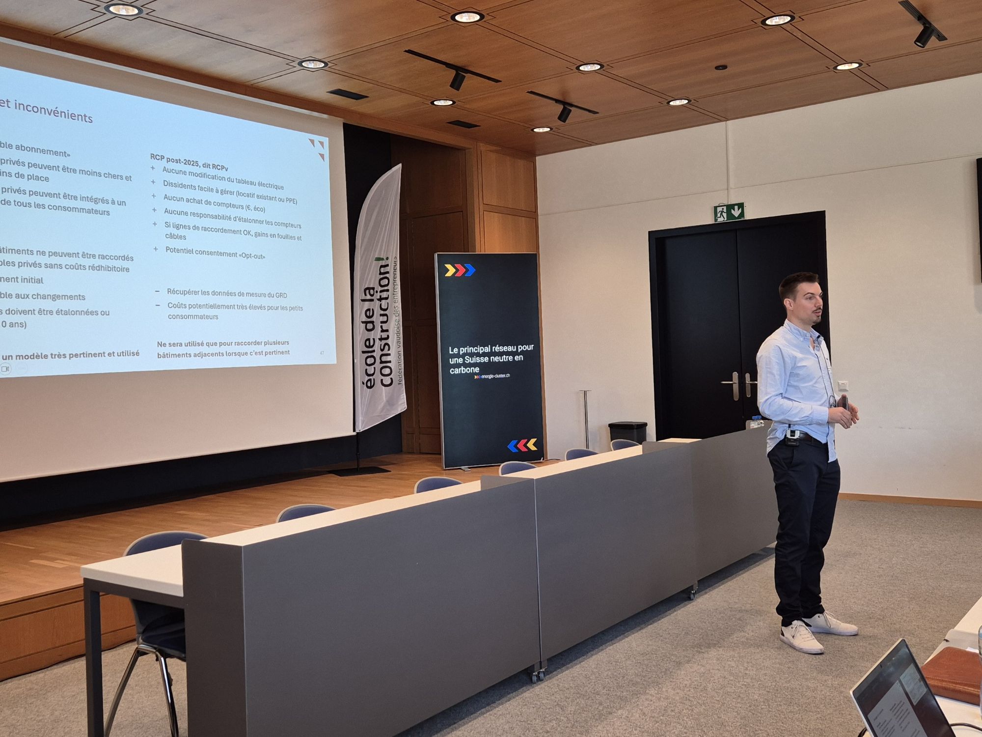 Gabriel Chavanne (Head Smart Solutions, Swisspower) a présenté la plateforme numérique CELhub facilitant la création d’une CEL, tandis que Julien Pharisa et Graziano Mancini (NeoVac ATA SA) ont partagé leur expérience pratique de planification et exploitation d’un RCP.
